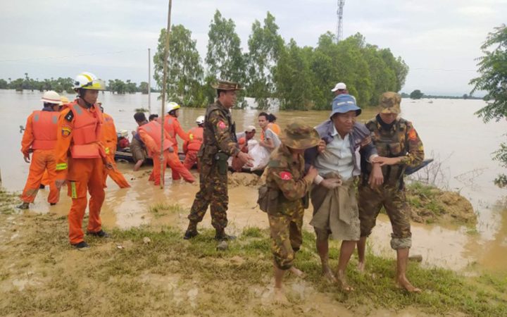 Timely evacuation of affected residents and are being carried out with vigour by various teams, including members of the Tatmadaw, Myanmar Police Force, Fire Brigade, Red Cross Society, and social welfare rescue groups.