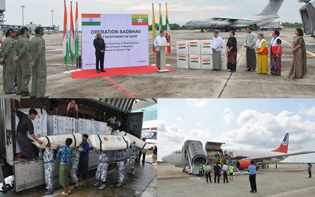 Similarly, the Indian naval vessel carrying food, clothes, medicines, tarpaulin and tents arrived at Thilawa Port yesterday night.
