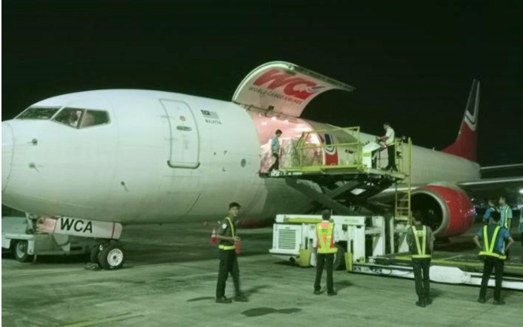 THE relief materials donated by the ASEAN Coordinating Centre for Humanitarian Assistance on Disaster Management (AHA Centre) landed at Yangon International Airport on Myanmar National Airlines flight MNA UB2020 at 1 am yesterday.