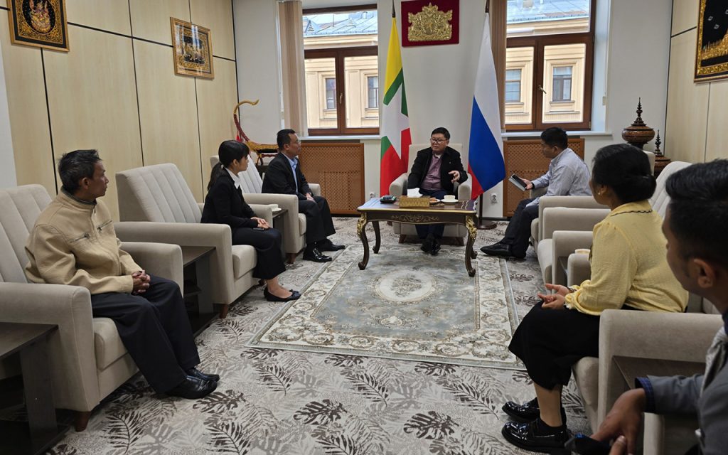 DEPUTY Minister for Agriculture, Livestock, and Irrigation Dr Aung Gyi, who is attending the seventh Global Fishery Forum and Seafood Expo Russia in Saint Petersburg, met staff and families of the Myanmar Consulate-General in the city on 16 September.