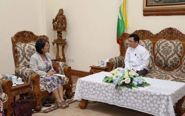 UNION Minister for Immigration and Population U Myint Kyaing received a delegation led by Ms Noriko Takagi, Resident Representative of UNHCR to Myanmar, at the Union Minister’s Office in Nay Pyi Taw yesterday afternoon.