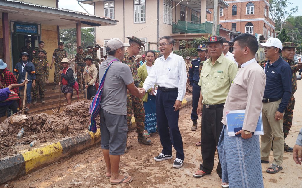 He comforted Tatmadaw members, social welfare organizations, and locals who participated in cleaning processes within the office compound and provided cash assistance. He also met with department staff and provided them with cash assistance.