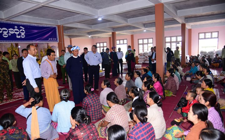 The SAC member and party then headed to the Hanlwe Monastery and met with flood-impacted people in the Konkyaing village-tract. They consoled the victims and donated K20 million in food and other necessities.