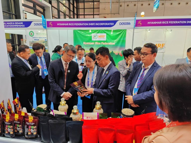 The Union minister later toured the Myanmar exhibition booths, where local businesses were showcasing a variety of goods. Myanmar’s participation in the Expo includes 84 booths featuring a diverse range of products such as Arabica coffee, agricultural produce, fishery products, small and medium-sized enterprise (SME) goods, handicrafts, and gemstones.