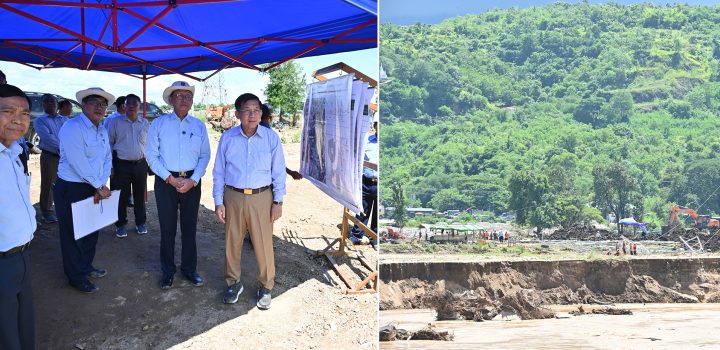 He also inspected the progress of installing a bailey bridge on the damaged approach road to Paunglaung Bridge (Awayya) on the bank of Pyinmana, which was eroded by the flood.
