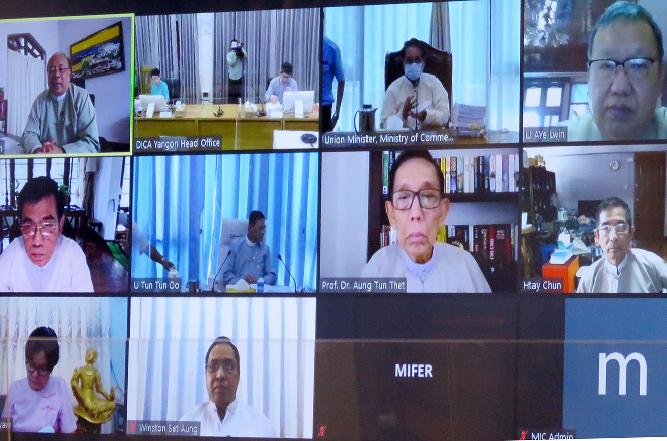 Myanmar Investment Commission (MIC) held its regular meeting (13/2020) via video conferencing system, yesterday morning. Chairman of the MIC, Union Minister U Thaung Tun, Vice-Chairman, Union Minister Dr Than Myint and members of the Commission participated in the meeting.