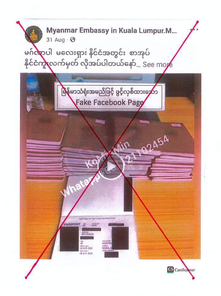 USING the name of the Myanmar Embassy to Malaysia, some people cheat on passport services on social media.