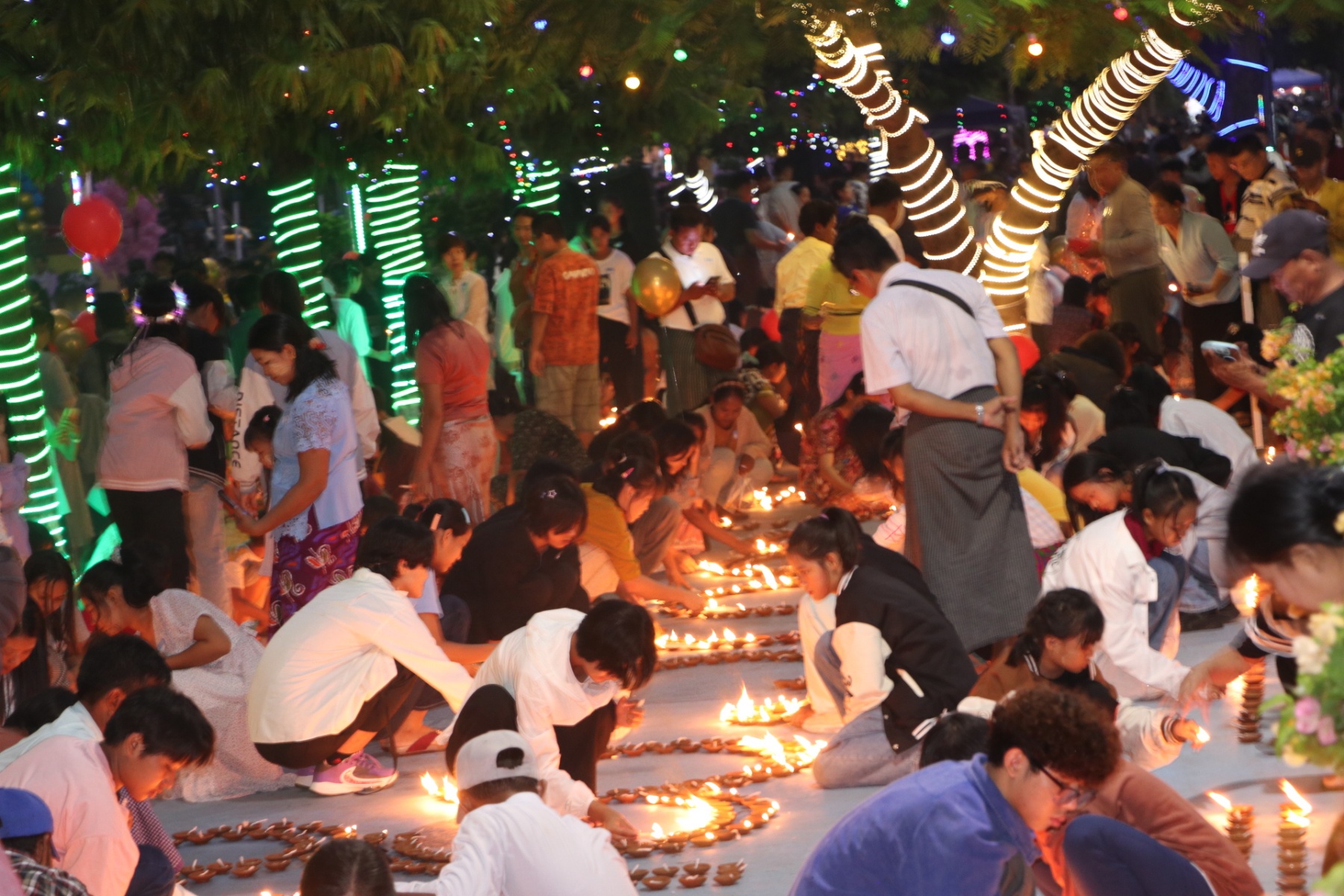 In addition, the Mandalay Region government hosted a grand lamp-lighting ceremony featuring the lighting of 10,000 oil lamps at the southern part of the Mandalay Moat on 26th Street, stretching all the way to 66th and 73rd Streets. Streets were beautifully decorated with lights, and the event drew thousands of people from various parts of the country, creating a lively and festive atmosphere.