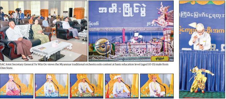 Myanmar traditional orchestra solo contest took place at the Wunzin Minyaza Hall of the National Library (Nay Pyi Taw). It involved amateur-level second-grade male contests and basic education level (aged 10-15) male and female contests.