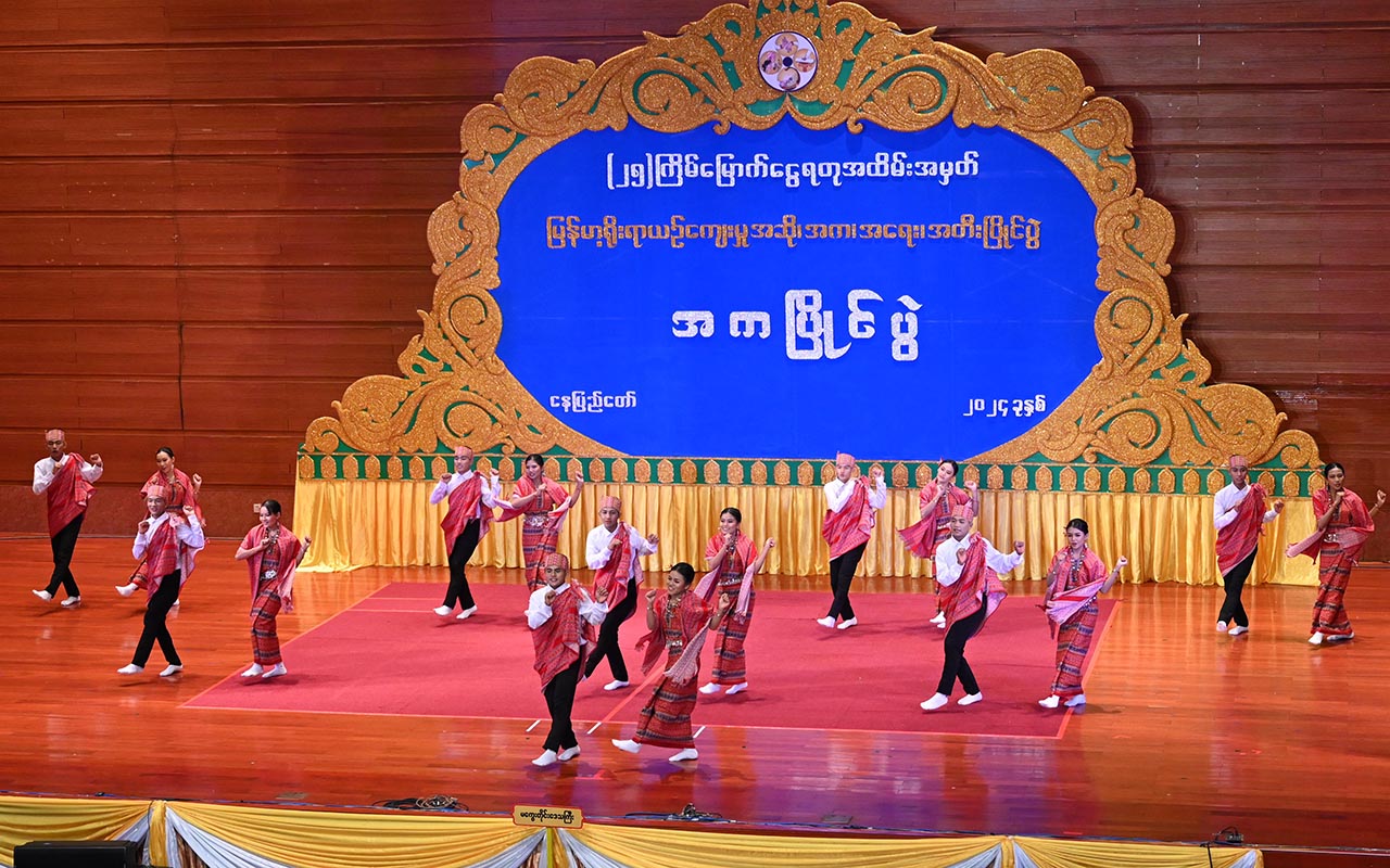Also present at the competition together with the Senior General and his wife were council members and their spouses, Union Ministers, union-level dignitaries and their spouses, the Nay Pyi Taw Council Chairman, senior Tatmadaw officers from the Office of the Commander-in-Chief and their wives, deputy ministers, members of the panel of judges assessing the competitions, supervisors, contestants from regions and states, ethnic brethren, as well as citizens who cherish cultural performing fine arts.
