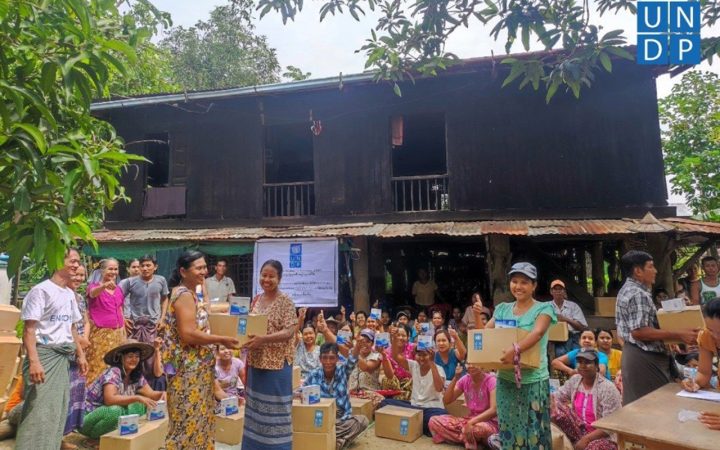 This grant is part of UNDP’s Enabling Community Recovery and Resilience (ENCORE) project, which collaborates with local communities to launch relief and rehabilitation activities for future natural disasters. UNDP provides personal items, foodstuffs, solar lights, power banks, clothing, and Household Emergency Assistance Packages (HEAP) boxes, including medications, in NyaungU Township of Mandalay Region, Kanma and Sinbaungwe townships of Magway Region, Nyaungshwe Township of Shan State, and Hpa-an Township of Kayin State.