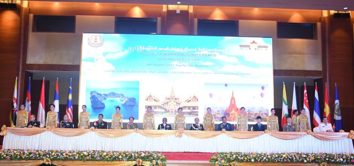 Myanmar Police Force successfully hosted the 42nd ASEANPOL Conference in Nay Pyi Taw from 21 to 24 October. On 23 October, a separate meeting between the Myanmar Police Force and Indonesian National Police, Lao Police Force and Royal Thai Police discussed how to increase police cooperation. The friendly sports tournaments were held. A friendly futsal football tournament between the current host Myanmar Police and the Royal Thai Police was organized. The guests’ wives were sent to the famous places in the Nay Pyi Taw Union Territory, visiting the Maravijaya Buddha Image, Myanmar Gems Museum, the National Museum and observing environmental landscapes.