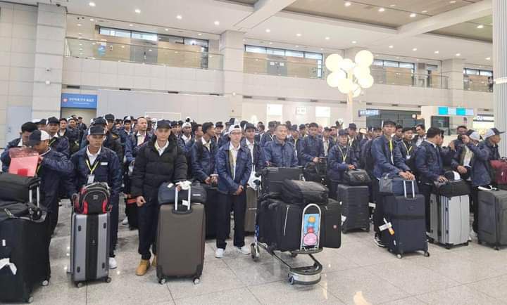 Myanmar workers arrived at Incheon Airport by Myanmar National Airlines UB 8301 (charter flight), and the labour attaché from the Myanmar Embassy in Seoul welcomed them and provided necessary assistance, stated the embassy.