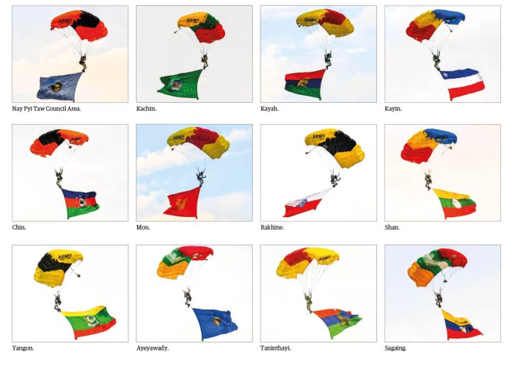 Submitted by moiuser on 3 November 2024 Members of the freefall squad bearing regional and state flags in