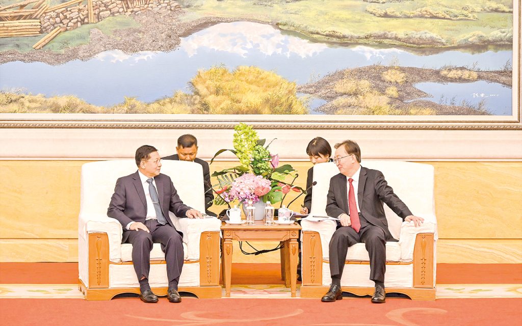State Administration Council Chairman Prime Minister Senior General Min Aung Hlaing met Mr Wang Ning, a member of the Communist Party of China’s Central Committee and Secretary of the Yunnan Provincial Party Committee, at the Haigeng Hotel in Kunming, China, yesterday evening.