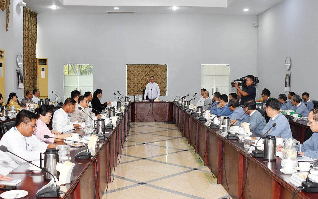 Union Minister for Natural Resources and Environmental Conservation U Khin Maung Yi, who is also the Patron of the Myanmar Gems Emporium Central Committee, attended the committee meeting in Nay Pyi Taw yesterday. Deputy Minister U Min Thu, who is the committee chairman, the permanent secretary, directors-general, managing directors, chairman, and officials of the Myanmar Gems and Jewellery Entrepreneurs Association, was also present at the meeting.