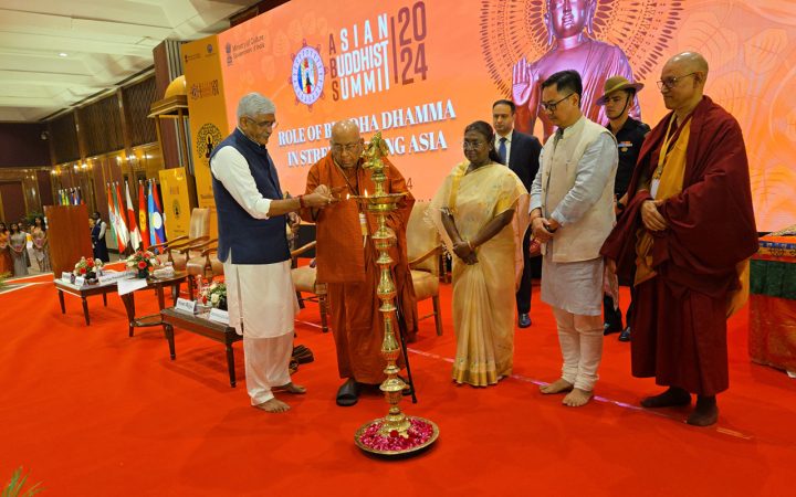 At the invitation of the International Buddhist Confederation, Abhidhaja Maha Rattha Guru Sitagu Sayadaw attended the First Asia Buddhist Summit 2024, held at Asoka Hotel in New Delhi, India, yesterday morning.