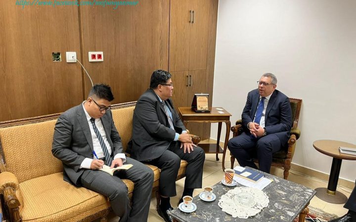 The Ambassador of the Republic of the Union of Myanmar U Kyaw Tin Shein, paid a courtesy call on Ambassador Ahmed Shaheen, Assistant Foreign Minister for Asian Affairs of the Ministry of Foreign Affairs of the Arab Republic of Egypt, at the New Administrative Capital on 3 November to exchange views on further bilateral cooperation and matters of mutual interests between the two countries.