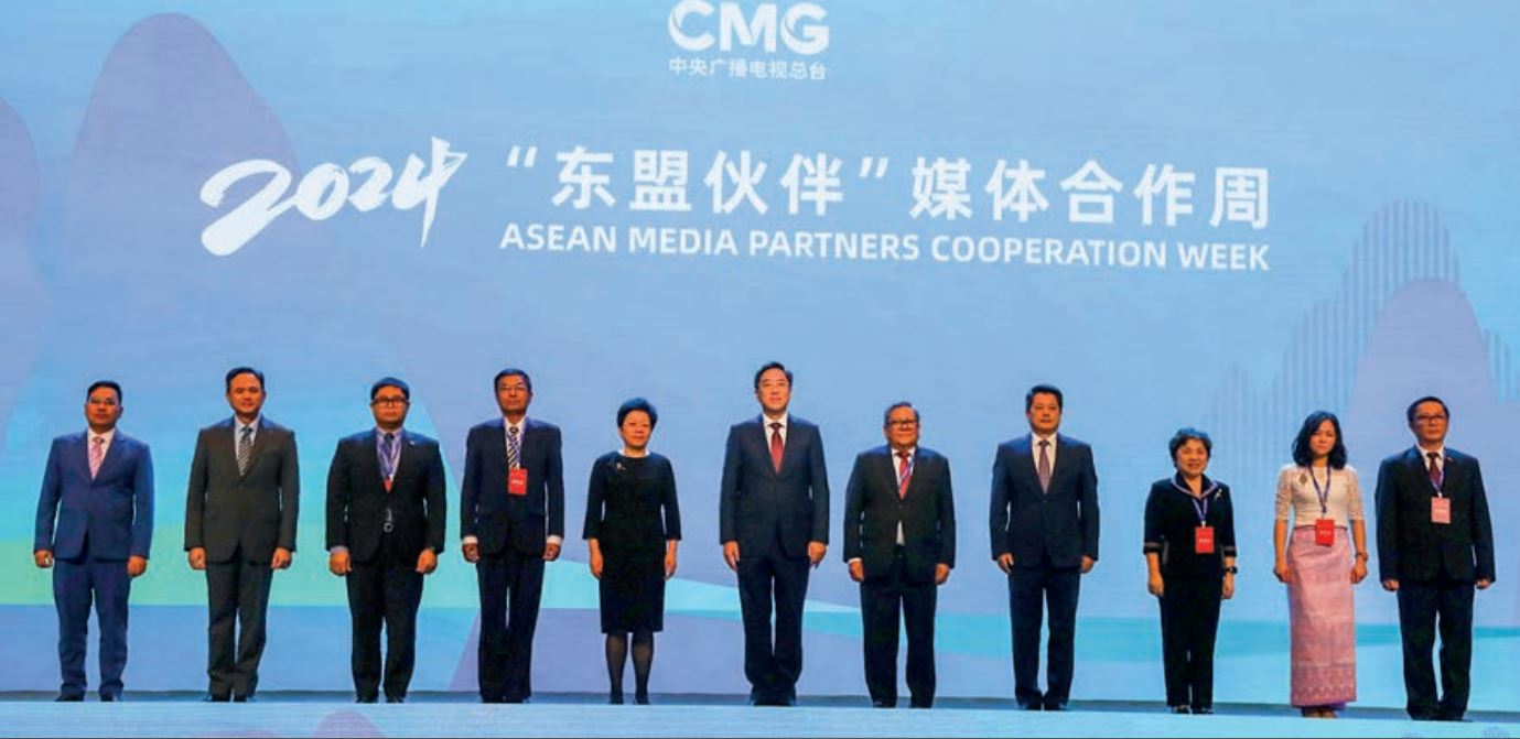 The event was also attended by Mr Fan Yun, Deputy Chief Editor of the China Media Group (CMG) and Chief Editor of CGTN, Mr Chen Yijun, Minister for Information and Permanent Member of the Party Committee of the Guangxi Zhuang Autonomous Region, along with other officials, including the Secretary of the Cambodian Ministry of Information, Kem Gunawadh, officials from the Information Ministries of ASEAN countries, representatives of private news outlets, and guests, as well as Counsellor Daw Khaing Nyein Su from the Nanning Consulate-General of Myanmar.