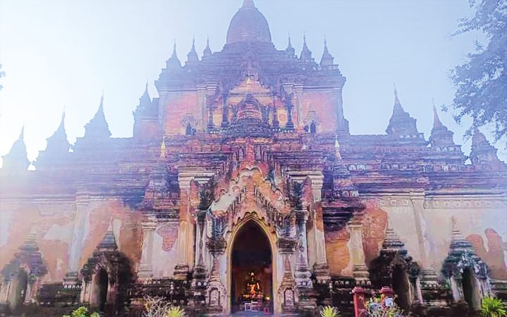 The two-storey Htilominlo Temple was constructed by King Zeyatheinkha (King Nataungmya) in the 13th Century of the Bagan era. The temple is 150 feet in height and 140 feet in length. The main hall faces east, and the three sides are decorated with small archways. There are four Buddha images inside the temple, and the ink inscriptions are on the walls. The mural paintings and Pantamawt artworks inside and outside of the temple prove the high architectural standards of the Bagan era which lures the interests of local and foreign travellers.
