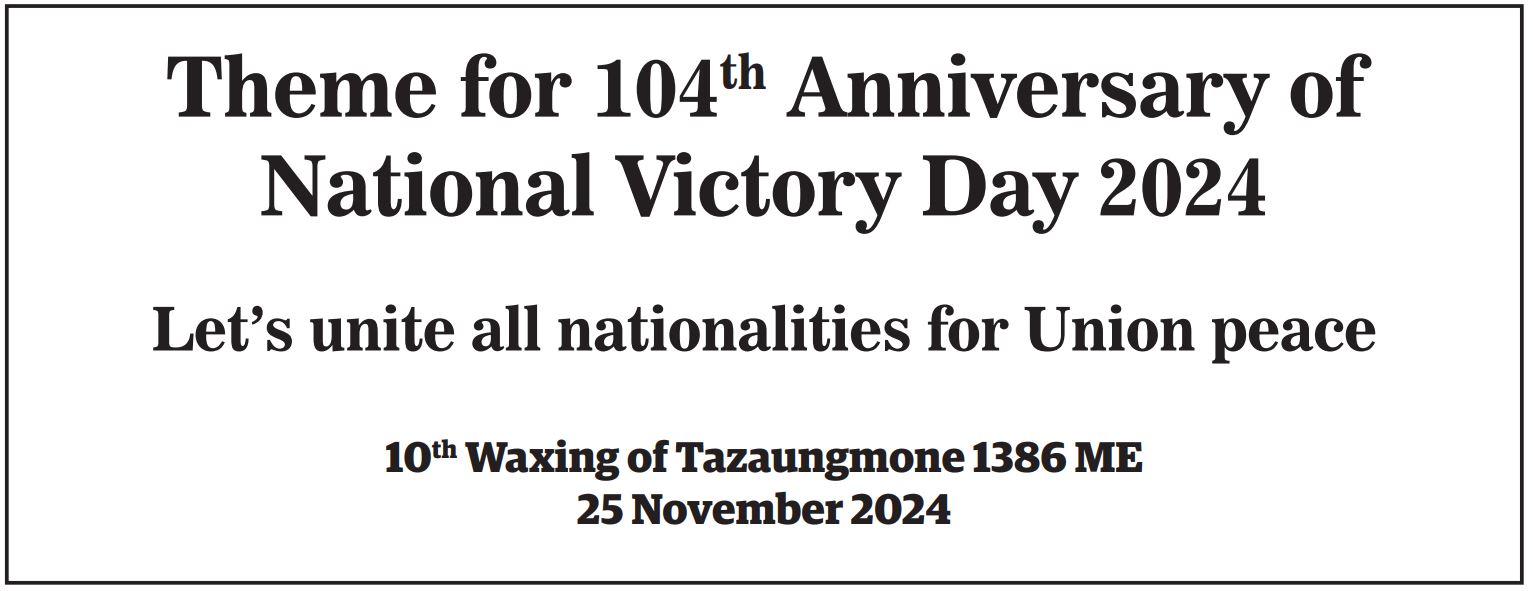 Submitted by moiuser4 on 12 November 2024 Let’s unite all nationalities for Union peace 10th Waxing of Tazaungmone 1386 ME 25 November 2024