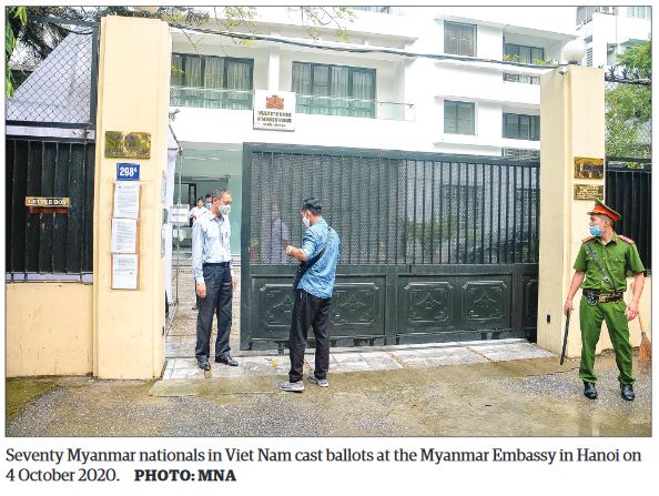 Seventy Myanmar nationals in Viet Nam cast ballots at the Myanmar Embassy in Hanoi, and 17 citizens in Eswatini, which has a total of 26 eligible voters, cast ballots in Matsapha.