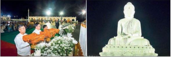 The grand offering ceremony of golden robes to the revered Maravijaya Buddha Image was held for the second time yesterday morning at the auspicious time in Buddha Park, Dekkinathiri Township, Nay Pyi Taw Union Territory.