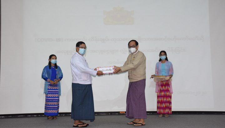 During the ceremony, Union Minister for Labour, Immigration and Population U Thein Swe, on behalf of the well-wishers, said that the ministry’s staff willingly donated cash to honour the Ministry of Health and Sports staff and volunteers who are working in the front line of COVID-19 preventive measures.