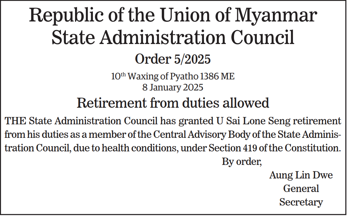 Republic of the Union of Myanmar Union Election Commission Announcement 170/2025