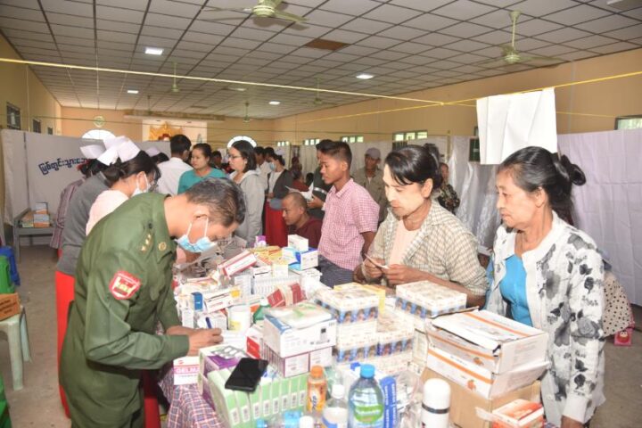 Specialist medical teams comprising specialists, doctors, and nurses from Tatmadaw established a temporary clinic at Dhamma Yadana Beikman of Aung Kyaikkhami Monastery in Htanee Village, Maubin Township, Maubin District, Ayeyawady Region, where they delivered healthcare services to 583 residents from the township and surrounding villages.