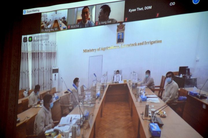 The Central Farmland Management Committee yesterday morning held its 33rd meeting via videoconferencing. The meeting was attended by Central Farmland Management Committee Chairperson Union Minister for Agriculture, Livestock and Irrigation Dr Aung Thu, the committee’s Vice-Chairperson Deputy Minister U Hla Kyaw, and members including the Permanent Secretary and the Directors-General.