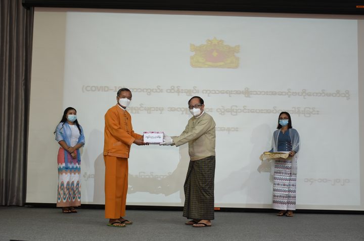 A donation ceremony for measures against COVID-19 prevention, control and treatment was held at the Ministry of Health and Sports yesterday afternoon. Union Minister for Transport and Communications U Thant Sin Maung, Union Minister for Natural Resources and Environmental Conservation U Ohn Win and Union Minister for Hotels and Tourism U Ohn Maung firstly explained the reason of the cash contribution to COVID-19 committee.