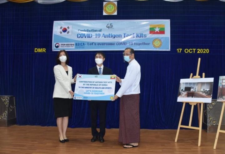 Union Minister Dr Myint Htwe said that ROK Government, ROK-based companies and 22 social organizations has donated medical supplies and laboratory equipment worth over US$ 2.5 million to Myanmar, and the donation of the test kits helped Myanmar increase its testing capacity. He further said that our country could conduct continuous testing of COVID-19 because of assistance from ROK and cooperation from ROK Ambassador and ROK Embassy officials.