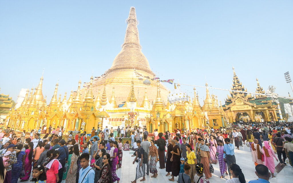 The full moon day of Taboung is one of the significant religious days for Buddhist people, and the Shwedagon Pagoda and other pagodas in Yangon were also crowded with visitors on the full moon day of Taboung.