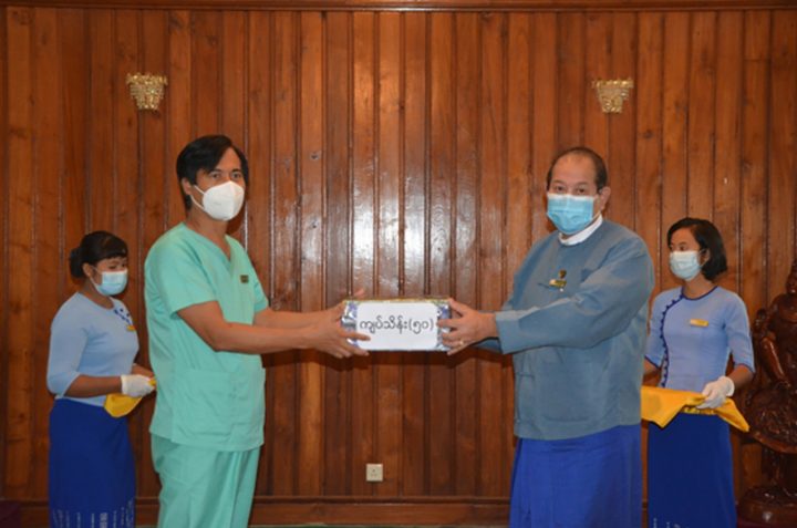 At the donation ceremony, Deputy Chairperson (1) of COVID-19 Medical Services Supervising Committee and Rector of the Institute U Kyaw Win Han presented K5 million donation. Secretary (1) of the committee and Medical Superintendent Dr Ko Ko Naing expressed words of thanks.