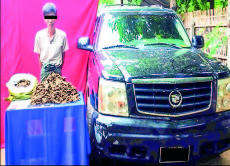 Following this seizure, further investigation led to the arrest of Thura Myo Myo (aka) Myo Myo at around 4:30 pm at his residence in Myawady Ward in Tatkon. There, authorities seized 2.3 kilogrammes of marijuana and a Cadillac Escalade.