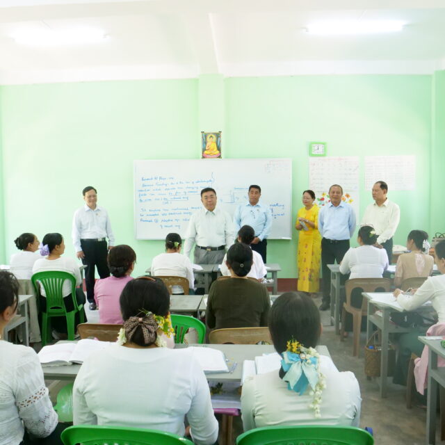 The course, conducted from 2 to 4 May at No 5 and No 14 BEHSs in Zabuthiri Township, is being taught by professors and teachers from Naypyitaw State Academy, Pathein University, Toungoo University, Sittway University, Bago University, and Yangon University of Economics for teachers from high schools and private schools. After the training, the professors, teachers, and SATs will go to designated basic education high schools in eight townships in Nay Pyi Taw to personally teach students retaking the matriculation exam.