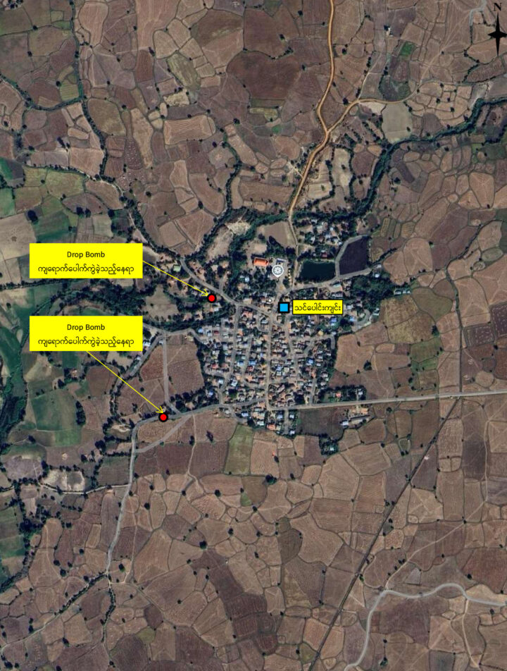 PDF terrorists carried out a bomb attack on Thinbaungkyin Village in Kanbalu Township, Sagaing Region, on the morning of 6 May, resulting in civilian casualties. The attack occurred at around 10:45 am, when terrorists dropped explosives from a drone flying approximately 800 metres above the southern part of the village. A man was killed and another man was injured in the blast while they were peacefully going about their daily lives.