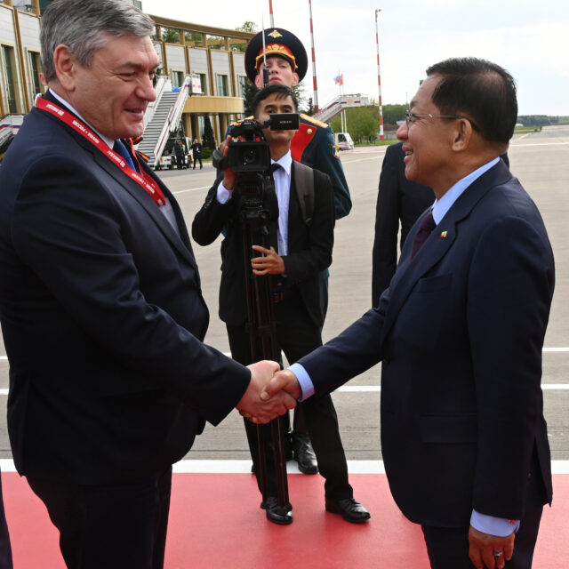 The Myanmar high-level delegation led by the Senior General arrived at Vnukovo International Airport in Moscow in the afternoon and was welcomed by Deputy Minister of Foreign Affairs Mr Andrey Rudenko and officials of the Russian Federation, Myanmar Ambassador to the Russian Federation U Thit Linn Ohn and Myanmar Military Attaché (Army, Navy and Air) Brig-Gen Kyaw Soe Oo.