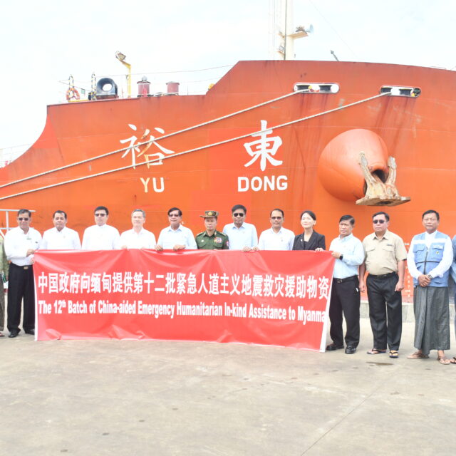 THE Chinese ship MT Yu Dong carrying 17,000 tonnes of Octane 92 arrived at the Max Energy Terminal in Kyauktan Township, Thanlyin District, at 2:45 am on 7 May. This marks the 12th donation from the People’s Republic of China to support rehabilitation efforts following the major earthquake that struck Mandalay.
