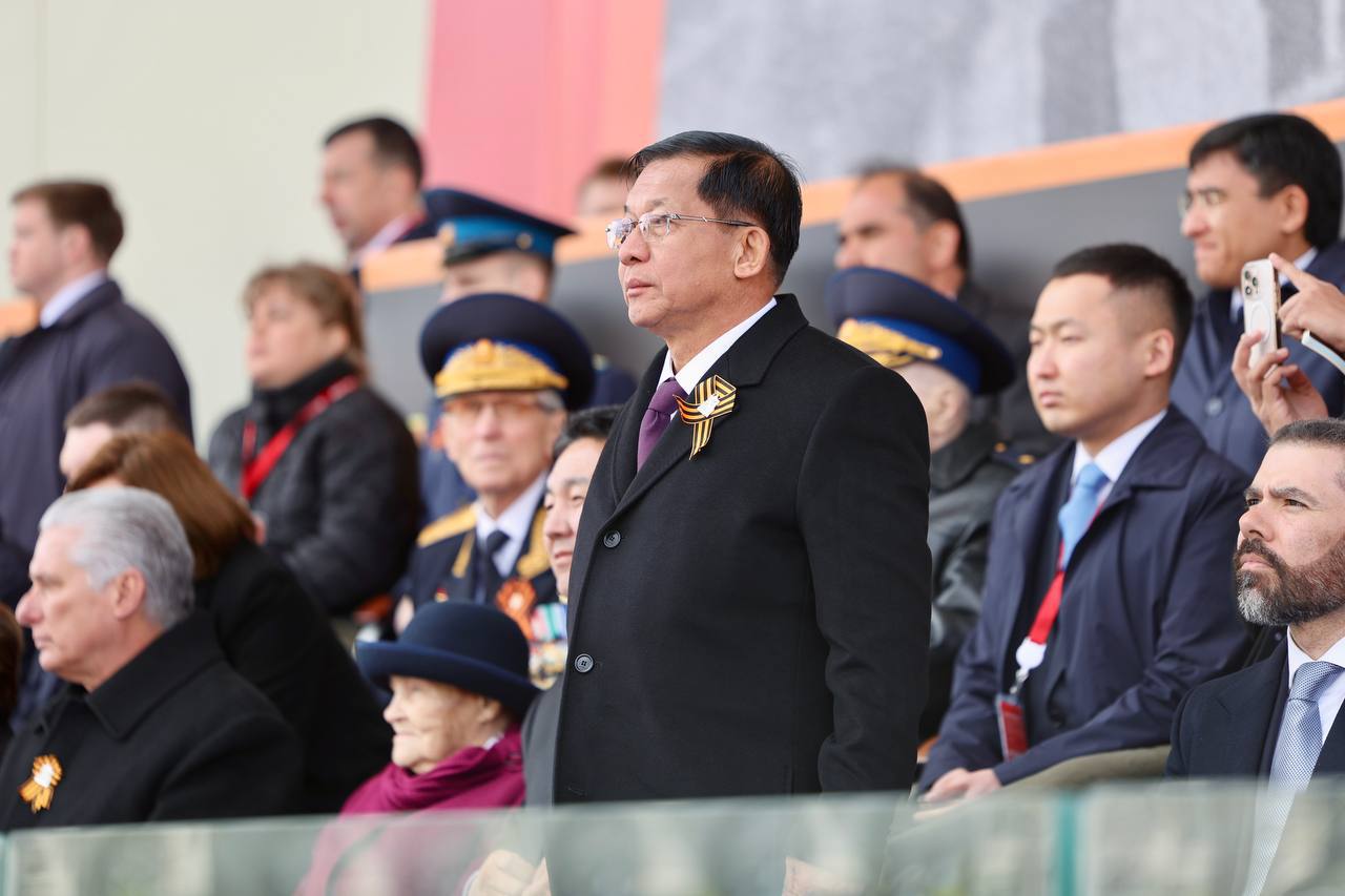 Chairman of the State Administration Council Prime Minister Senior General Min Aung Hlaing attended the military parade to mark the 80th Anniversary of the Victory in the Great Patriotic War 1941-1945 of the Russian Federation, together with Heads of State and officials from international countries, at the Red Square in Moscow yesterday morning.