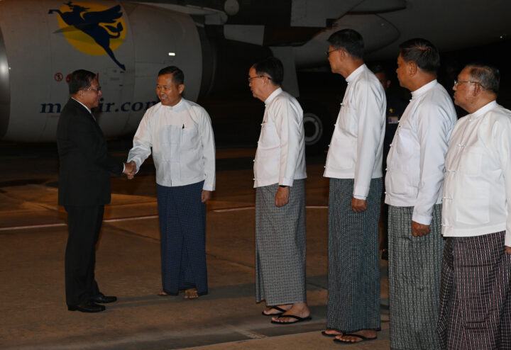 In the evening, the delegation led by the Senior General arrived back at Nay Pyi Taw Tatmadaw Airport where they were welcomed back by SAC Vice-Chairman Deputy Prime Minister Vice-Senior General Soe Win and his wife Daw Than Than Nwe, Council Secretary General Aung Lin Dwe and his wife, council members, Union ministers, senior Tatmadaw officers from the Office of the Commander-in-Chief and their wives, the commander of Nay Pyi Taw Command, the Ambassador of the Russian Federation to Myanmar and officials from the embassy and the military attaché’s office.