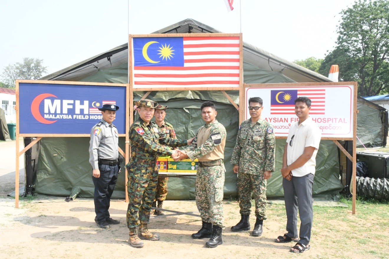Lt-Gen Thet Pon from the Office of the Commander-in-Chief (Army) also oversaw the allocation of cash assistance K61.765 million for rice, construction materials and aid for the earthquake victims by the Department of Disaster Management, kitchen utensils by AHA Centre and personal goods by Brunei at the 700th Anniversary Gymnasium in Parami Ward of Sagaing. He presented gifts to the Malaysian medical team. He observed healthcare services provided by a Tatmadaw mobile medical team to quake-affected monks, nuns and people in Sagaing.