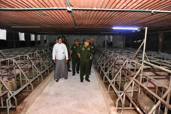 The Vice-Chairman of the State Administration Council made these remarks during his visit yesterday to the Taikkyi Livestock Farming Zone, which is currently under construction, to meet with entrepreneurs authorized to operate livestock businesses in the zone, as well as departmental officials from Taikkyi Township. The zone, spanning 2,101.04 acres, began livestock activities in sections on 3 September 2023, and is currently conducting ongoing farming operations. The Deputy Prime Minister was accompanied by Yangon Region Chief Minister U Soe Thein, senior military officers from the Office of the Commander-in-Chief of Defence Services, the Yangon Command Commander and officials.
