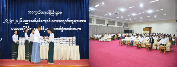 State Administration Council Member, Deputy Prime Minister, Union Minister for Defence General Maung Maung Aye, attended the stationery handover ceremony for students of the 2025-2026 academic year yesterday.