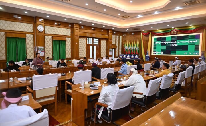 Later, the SAC member, along with the Kachin State chief minister and members of the state government, met with leaders and officials from 16 religious organizations, including Buddhist and Christian groups, at the state government office hall. During the meeting, she said national peace and development require the unity and cooperation of all people. She highlighted the important role of religious organizations in fostering correct thinking and promoting compassion, encouraging religious leaders to share teachings aligned with their respective doctrines. She also emphasised the public’s active participation and stability as essential to holding the forthcoming general election.