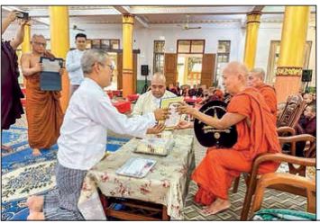 The Myanmar- China Friendship Association (Central) donated 1,265 dozen notebooks, stationery, and over K1.14 million to Buddhist monasteries on 10 and 11 July.