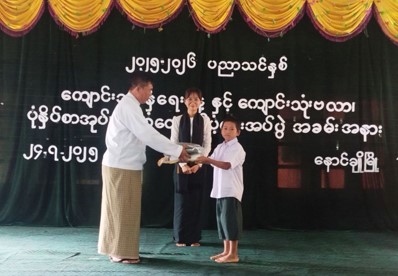 The officials presented the textbooks, 180,000 notebooks, 3,860 dozen pencils, 3,000 pens and 200 school uniforms provided by the government for the students, and 176 uniforms for the teachers provided by Tatmadaw.