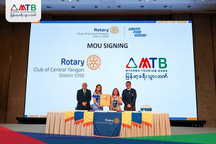According to the Myanmar Tourism Bank, the MTB and the Rotary Club of Central Yangon (RCCY) have signed a Memorandum of Understanding to jointly implement social welfare projects.