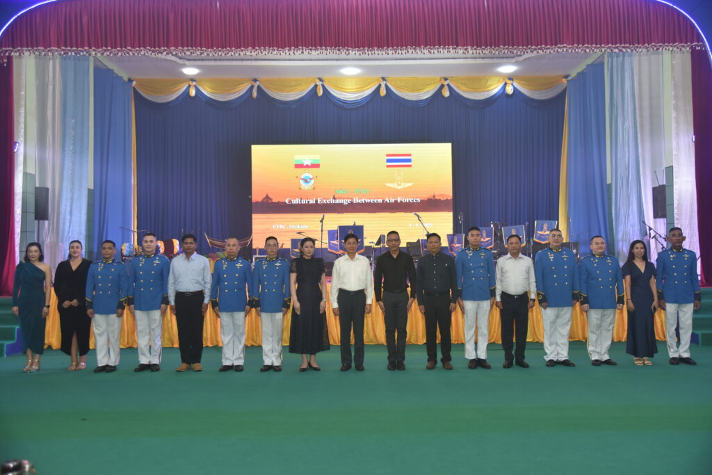 On the afternoon of the same day, members of the entertainment troupe from the Royal Thai Air Force performed at the Thura Ohn Khaing Hall of the Ground Training Air Base Headquarters in Meiktila. The event was attended by Chief of Staff (Air) Lt-Gen Zaw Win Myint and accompanying officers, as well as air base commanders, officers, personnel, and their families.